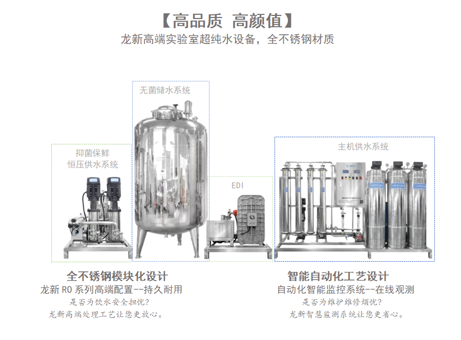 該系列設備適用于全自動生化分析儀、檢驗分析、試劑配液、實驗室試驗、微生物培養(yǎng)、容器沖洗用水等。